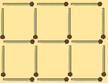 Şəkildə gördüyünüz kimi 6 eyni kvadrat 17 kibritdən düzəldilmişdir. 5 kibrit götürüb, qalanlarına dəymədən kvadratların sayını 3-ə endirə bilərsinizmi?